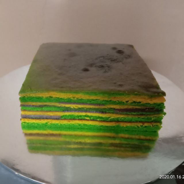 Mungkin zaman tu takde pewarna lain kot. Kek lapis asam manis (bakar).